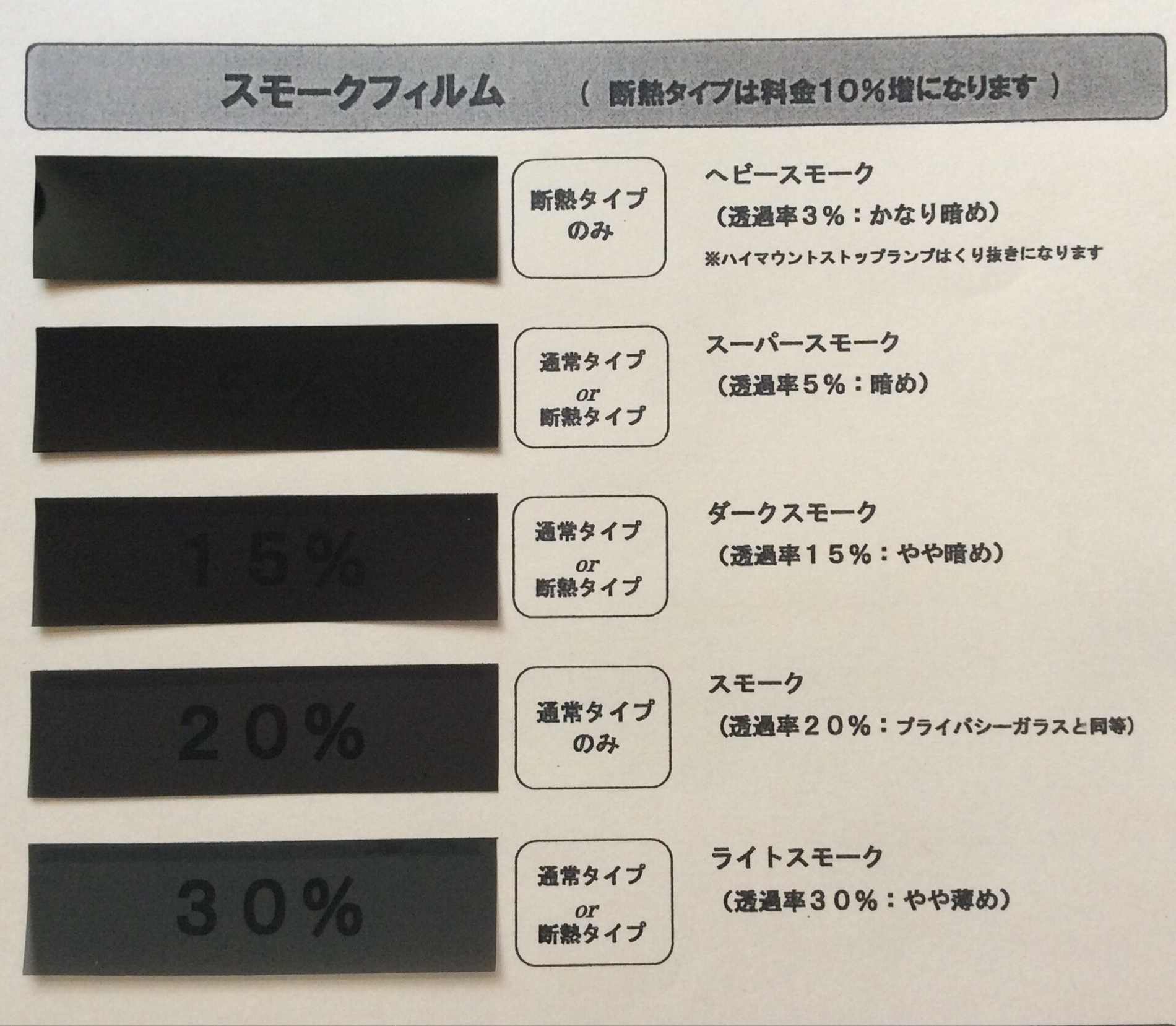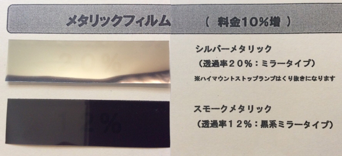 車内の温度上昇をおさえる効果のあるフィルムになります(料金10%増)。